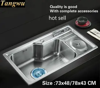Special Offer Free Shipping Luxury Multifunction Kitchen Single Trough Sink Do The Dishes 304 Stainless Steel Big Hot Sell 730x480/780x430 MM Discount 0% Today!