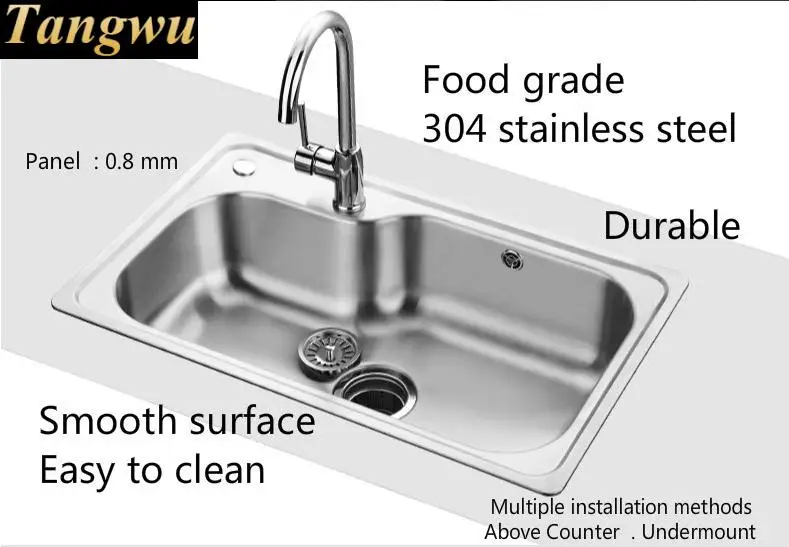 Special Offer Free Shipping Standard Kitchen Sink 0.8 Mm Single Slot Food Grade 304 Stainless Steel Durable Hot Sell 73x45 CM Discount 0% Today!