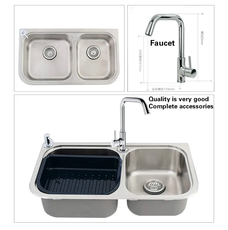 Best . (0% Off) Buy Free Shipping Standard Individuality Kitchen Sink Hot Sell Food Grade 304 Stainless Steel Double Trough 780x430 MM Price Online.