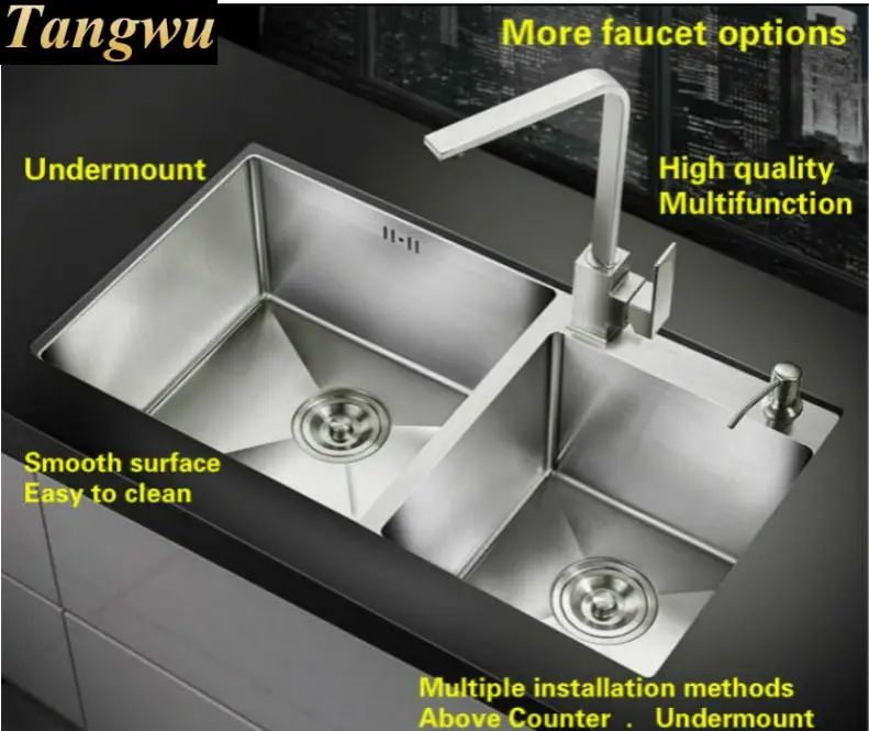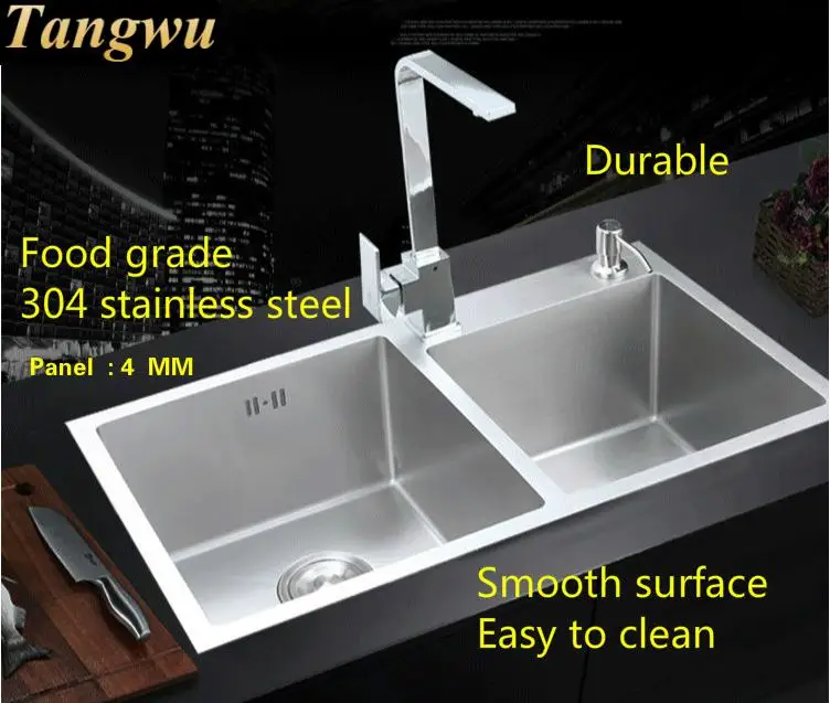 Special Offer Tangwu High-grade Kitchen Sink Food-grade Smooth Surface 304 Stainless Steel 4 Mm Thick Manual Double Groove 71X42X22 CM Discount 0% Today!