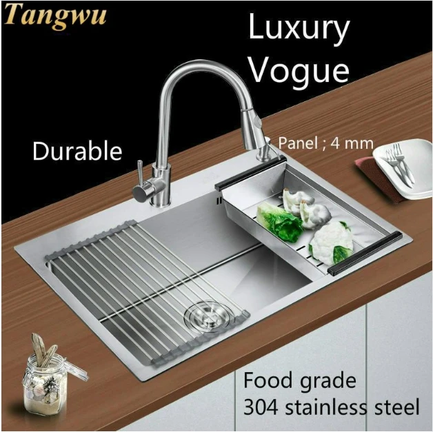 Best . (0% Off) Buy Free Shipping Hot Sell Household Vogue Luxury Big Kitchen Manual Sink Single Trough Wash The Dishes 304 Stainless Steel 60x45 CM Cheap Online.